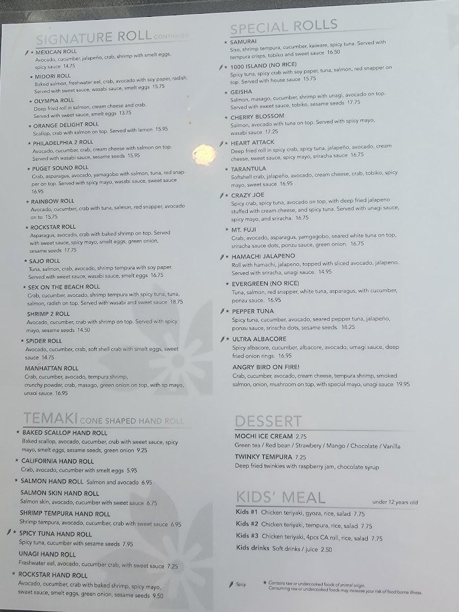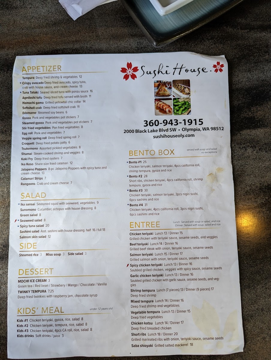 Sushi House - Olympia Menu